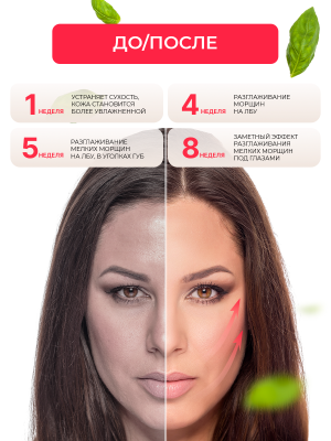 - Улучшение внешнего вида кожи и мгновенная коррекция морщин.